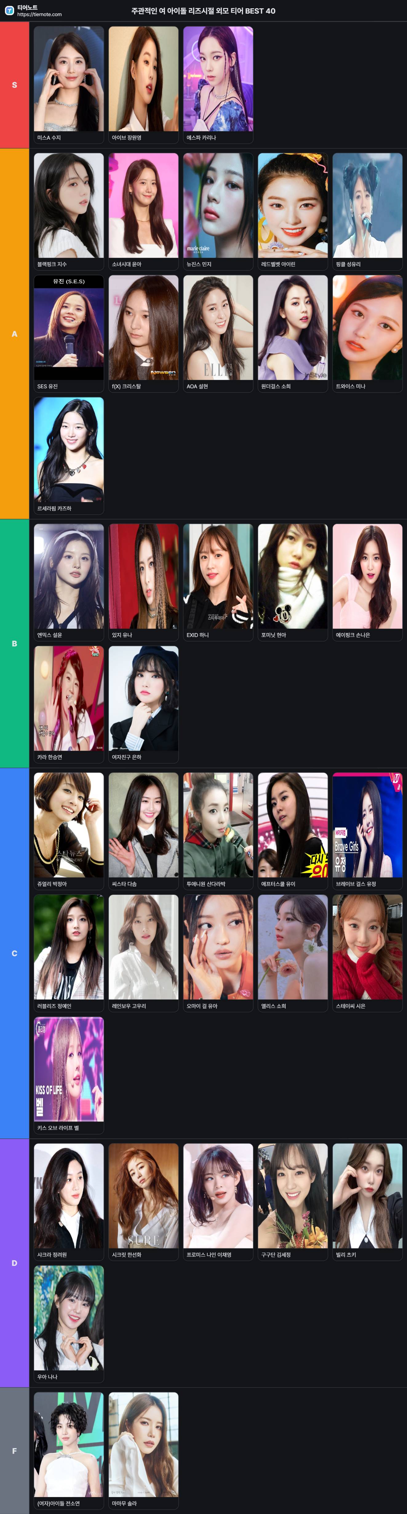 주관적인 여 아이돌 리즈시절 외모 티어 BEST 40 티어요약
