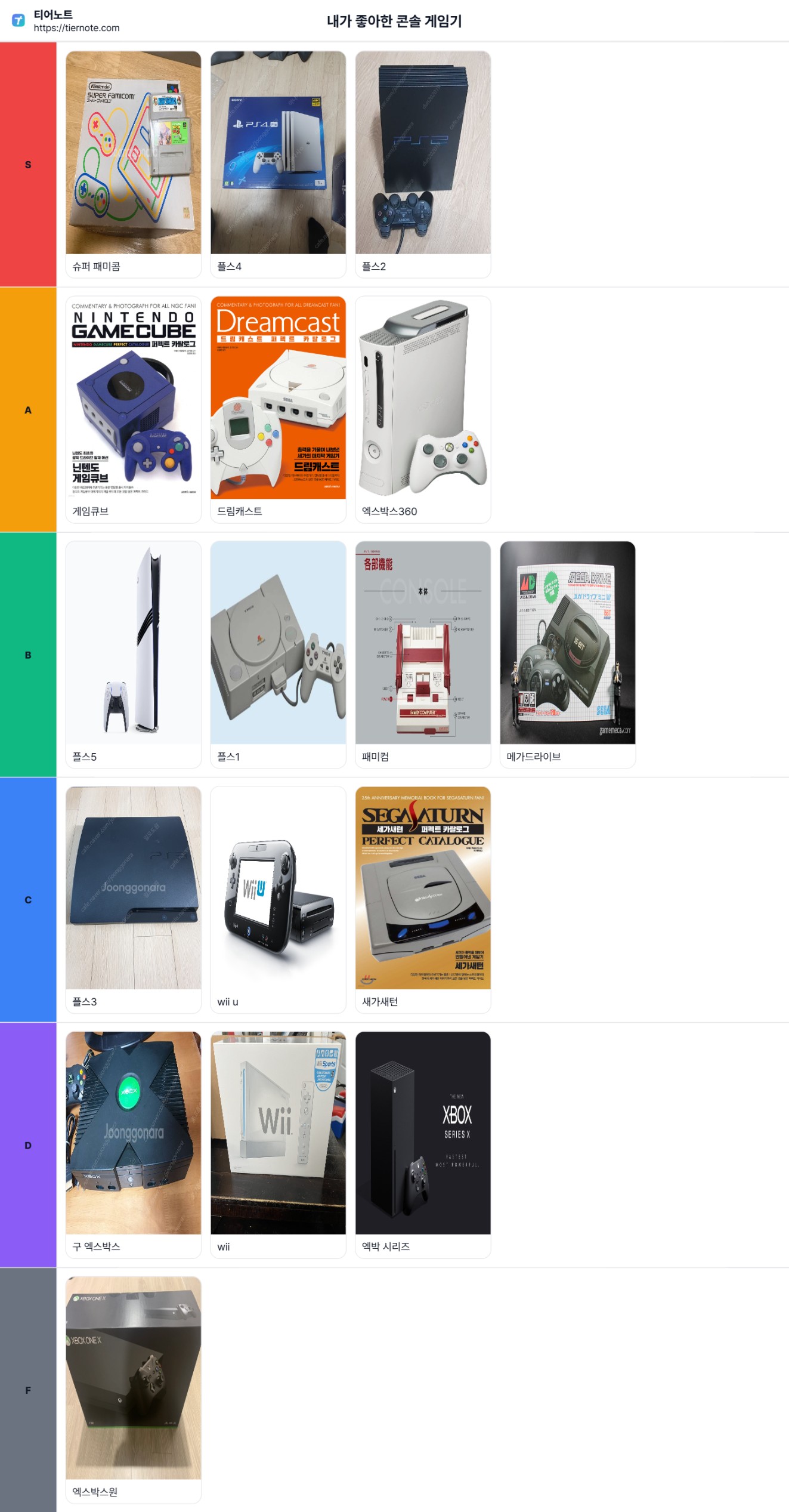 - B티어 : 플스5, 플스1, 패미컴, 메가드라이브