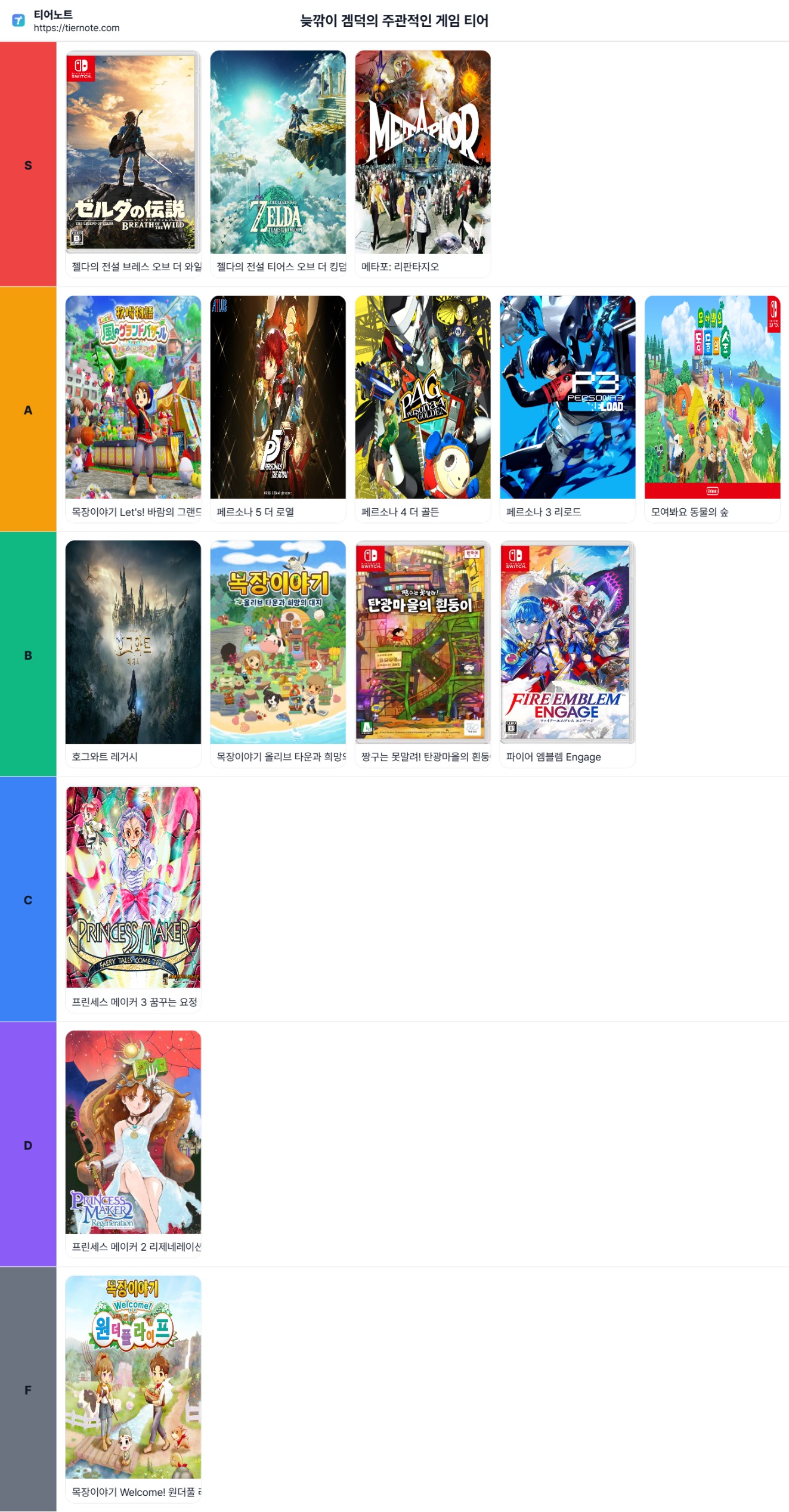 늦깎이 겜덕의 주관적인 게임 티어 티어요약
