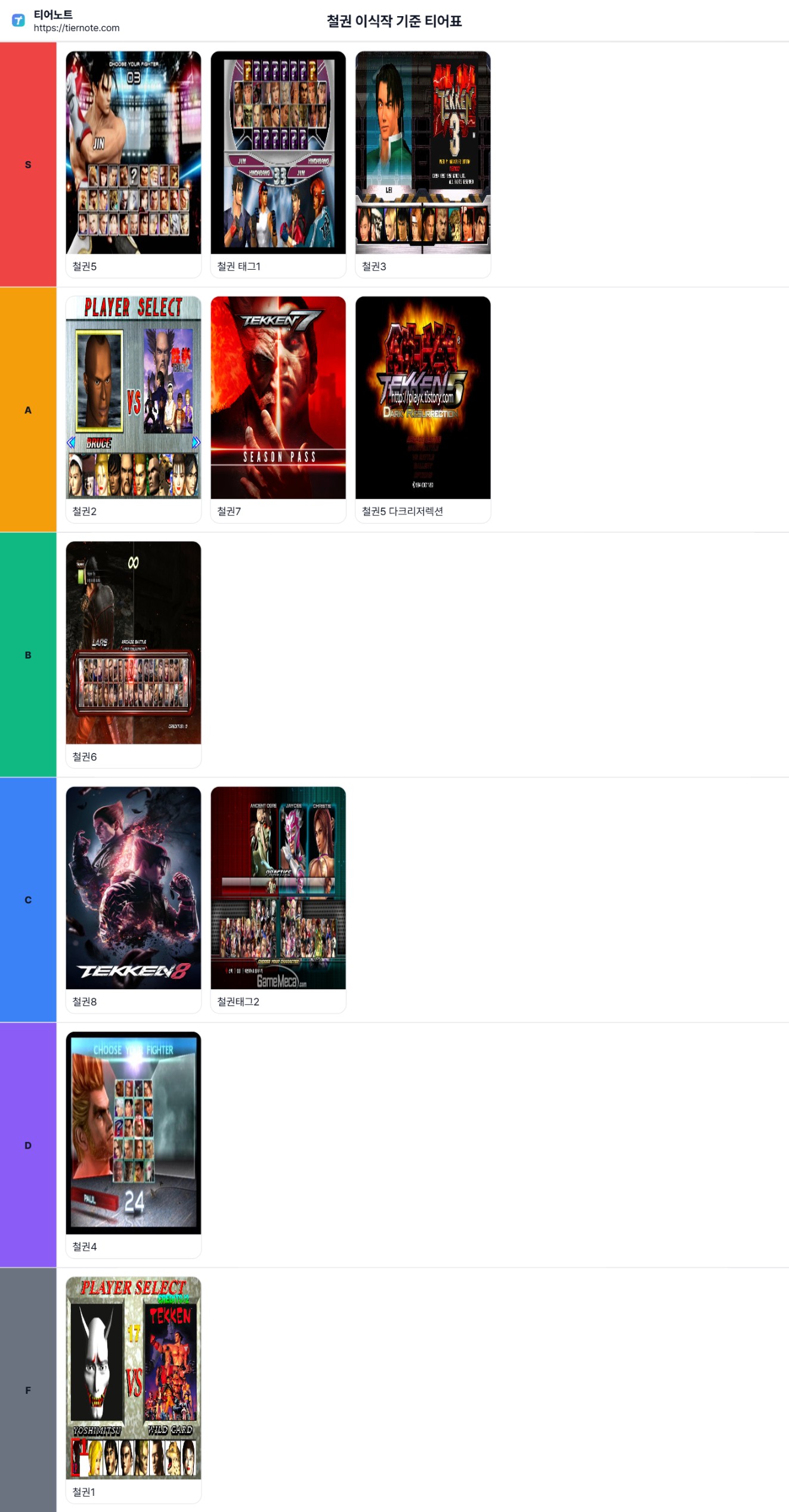 - A티어 : 철권2, 철권7, 철권5 다크리저렉션