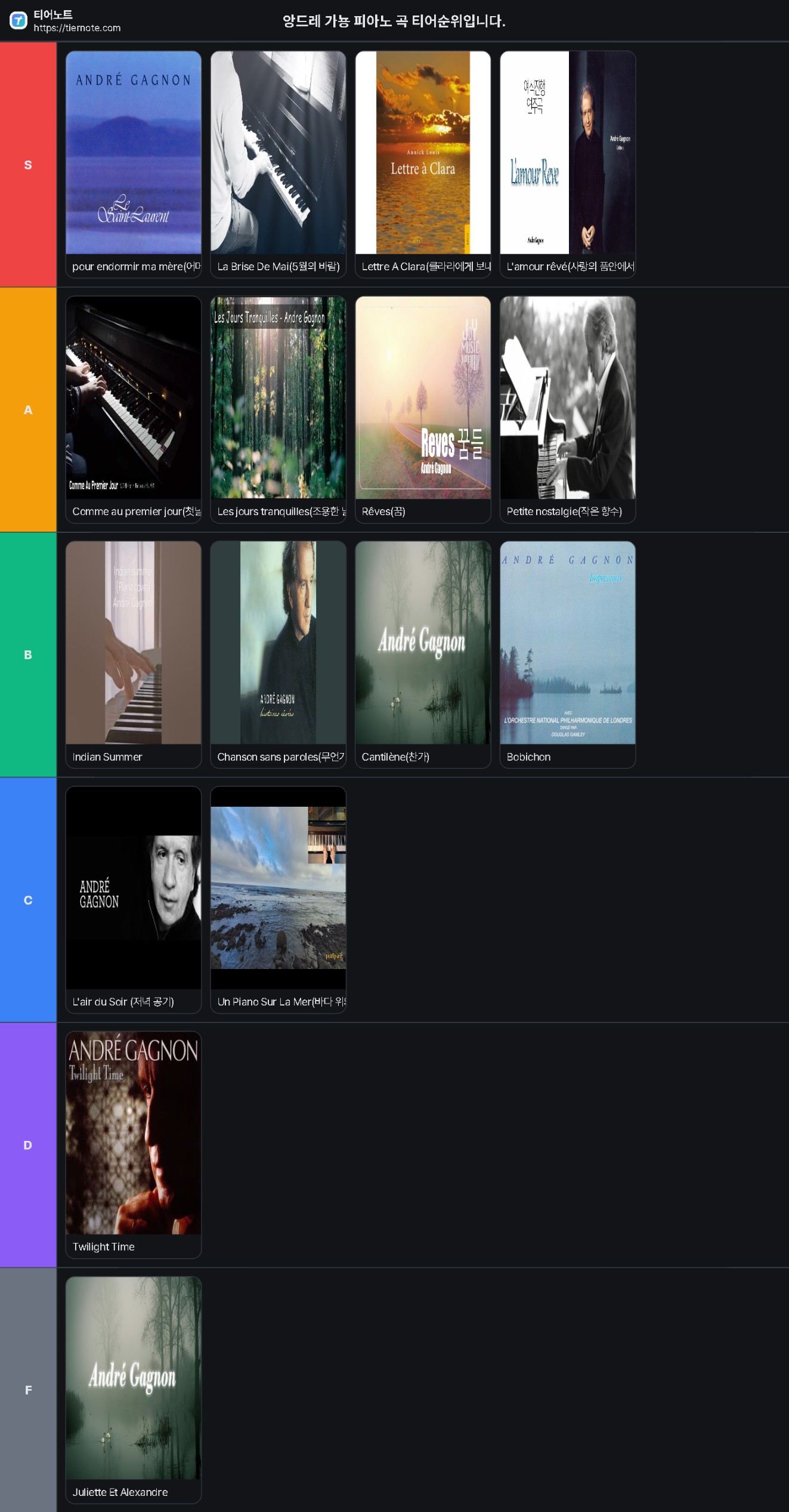 앙드레 가뇽 피아노 곡 티어순위입니다. 티어요약