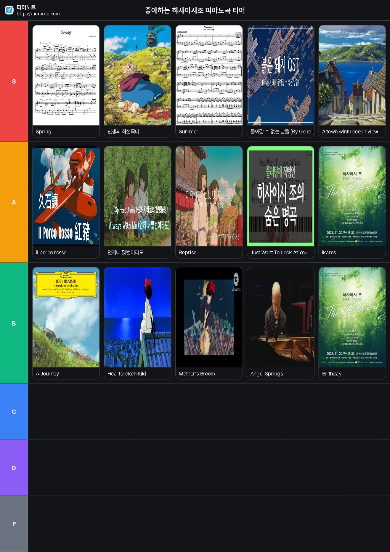 좋아하는 히사이시조 피아노곡 티어