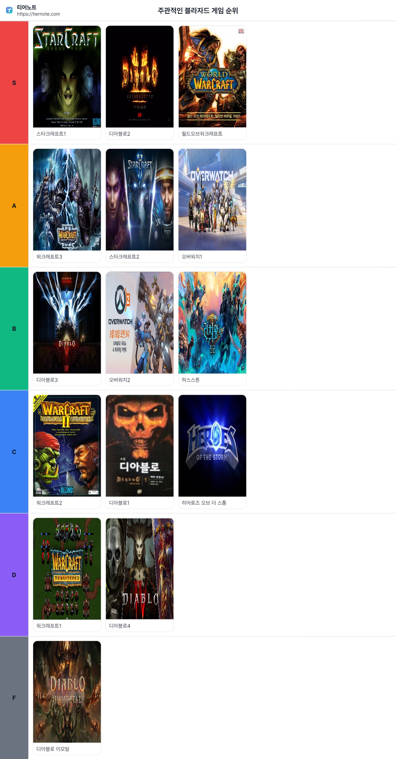 C주관적인 블라자드 게임 순위워크래프트2주관적인 블라자드 게임 순위디아블로1주관적인 블라자드 게임 순위히어로즈 오브 더 스톰