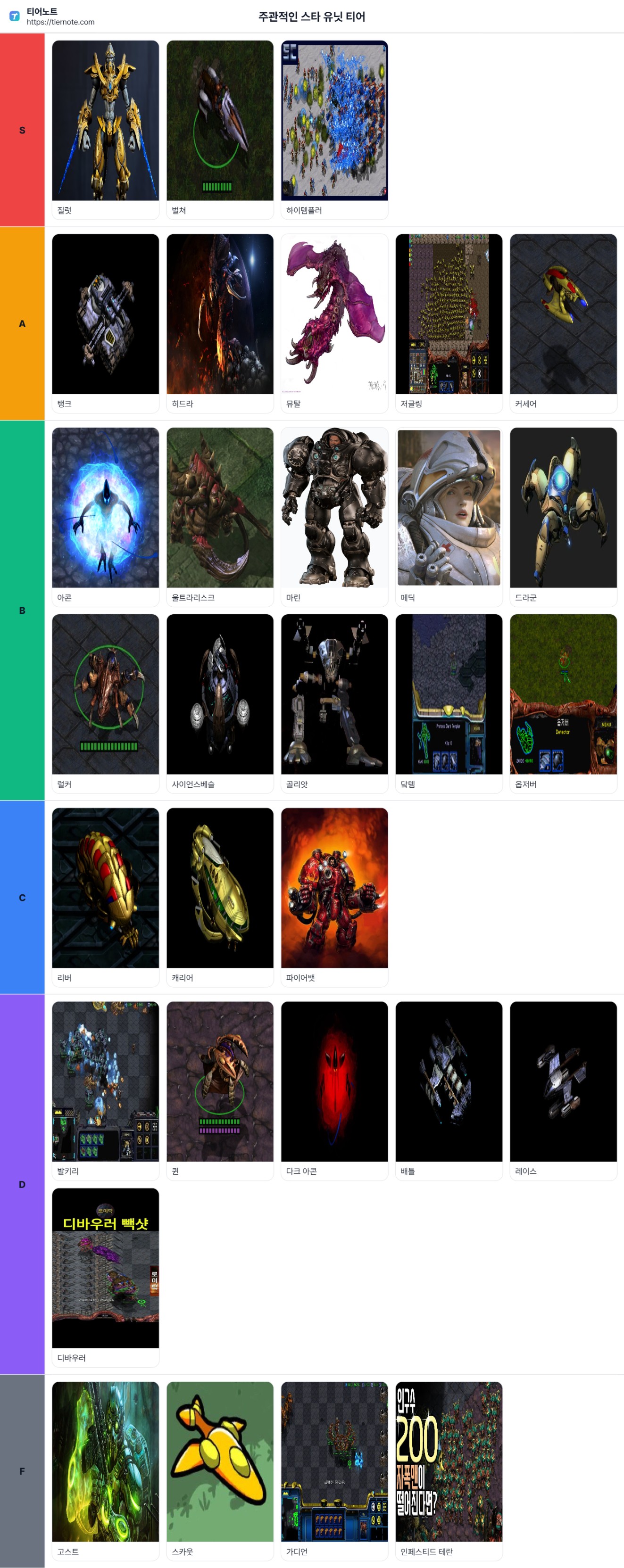- F티어 : 고스트, 스카웃, 가디언, 인페스티드 테란
